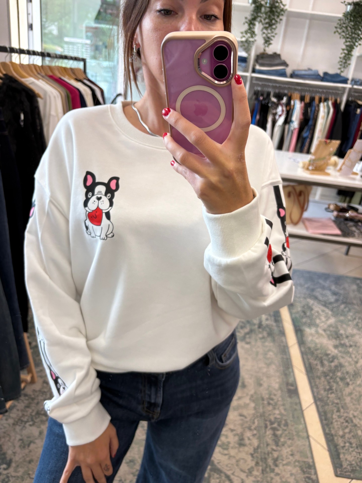 Felpa in cotone garzato, tg unica, vestibilità morbida. dettaglio stampa…