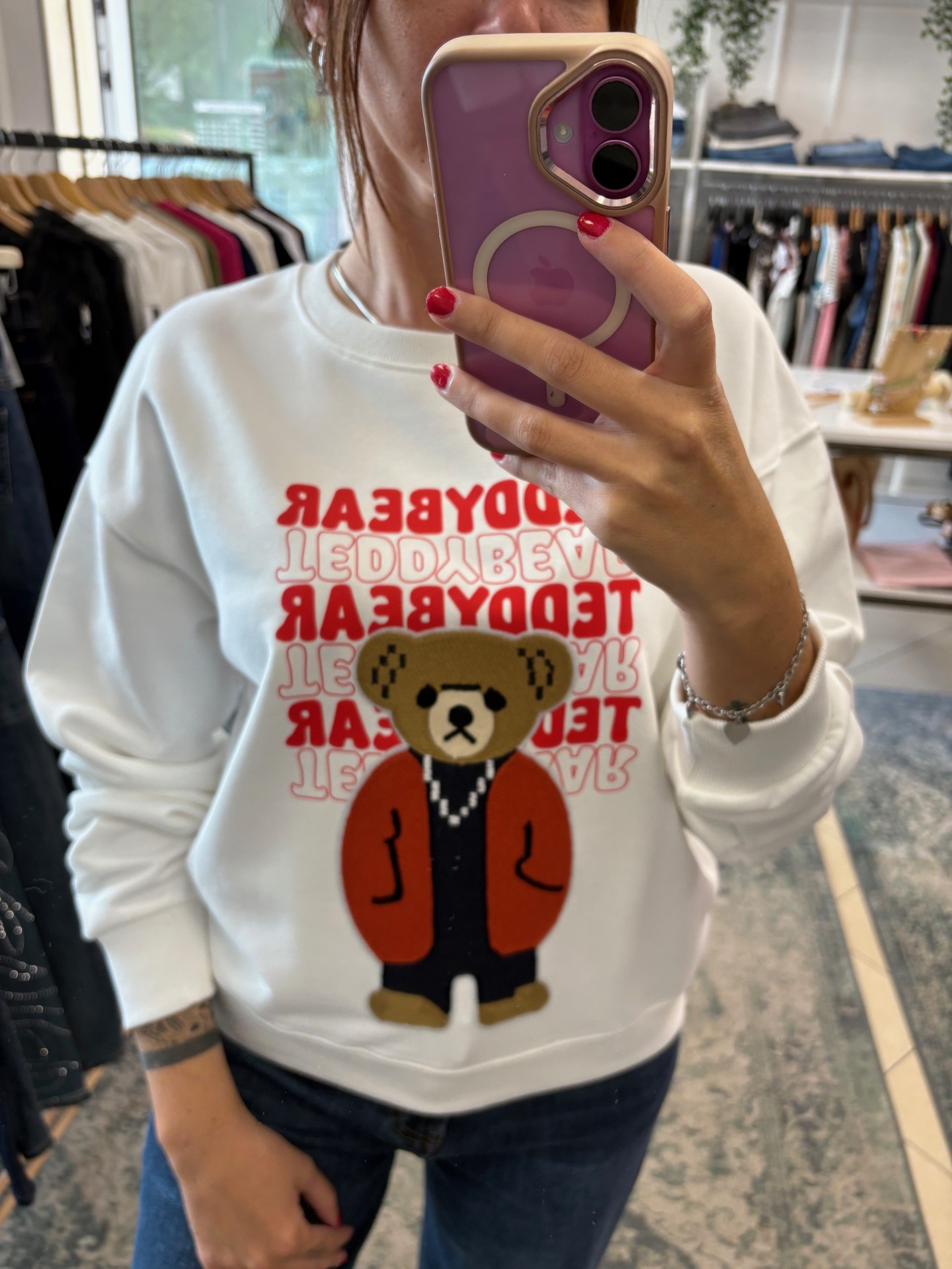 Felpa in cotone garzato, tg unica. vestibilità morbida. orso dettagli…