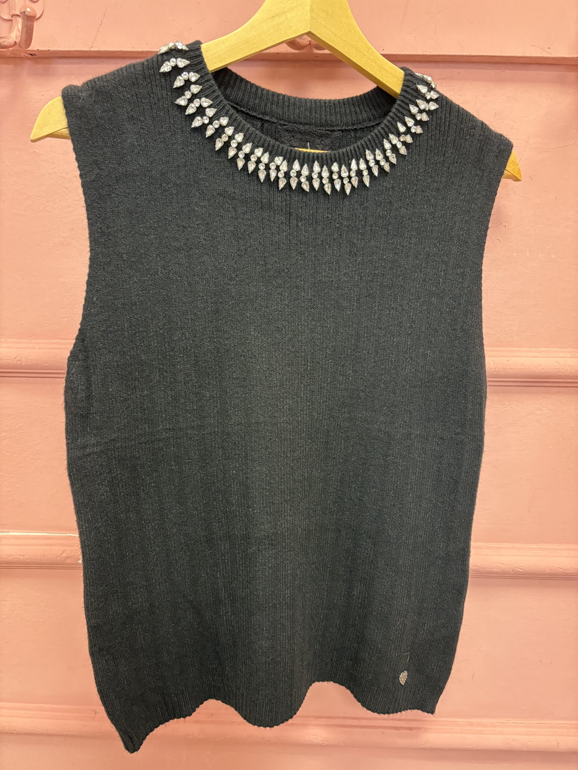 gilet con dettaglio brillantini sul collo , taglia unica, disponibile in più variante colore