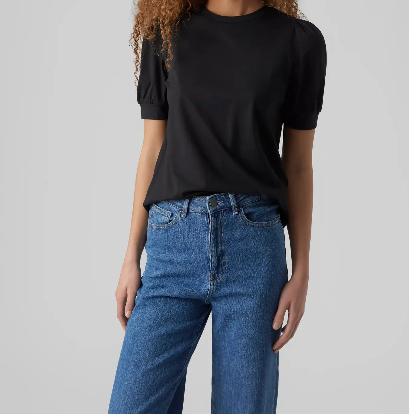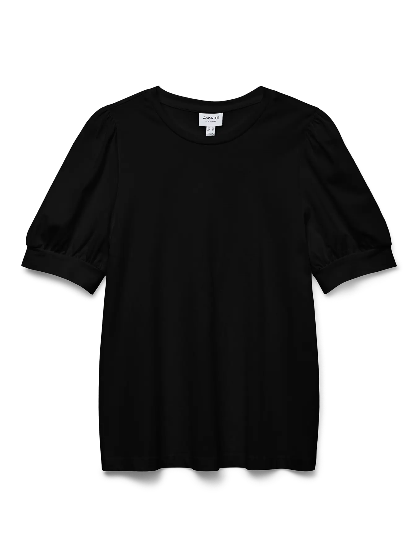 T-shirt in cotone con manica a sbuffo. unica variante colore nera. a taglie